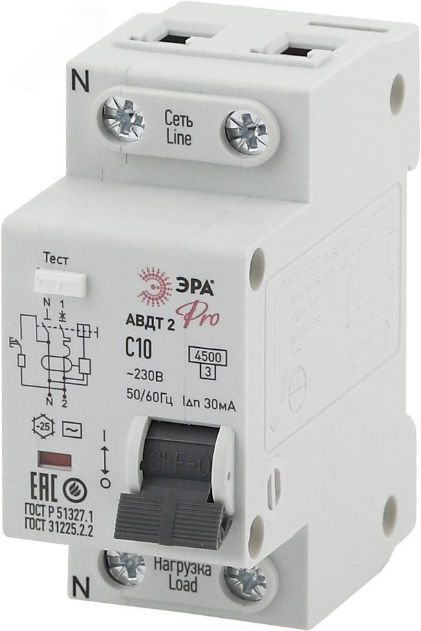 Автоматический выключатель дифференциального тока Pro NO-902-137 АВДТ2 (AC) C10 30mA 6кА 1P+N