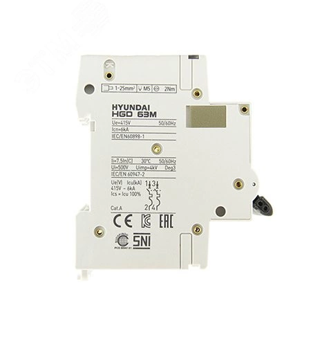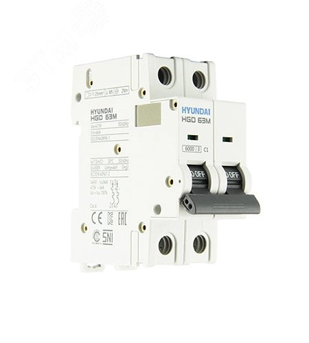 Полное описание: Автоматический выключатель HGD63-M 2PMCS0000C 00001 2 полюса, 1А, ток к.з. 6kA, хар-ка C (STANDARD)