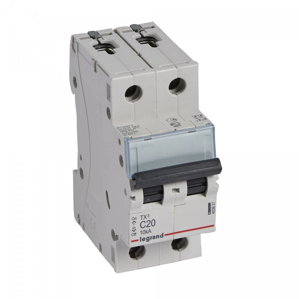 Автоматический выключатель TX? 6000 - 10 кА - тип характеристики C - 2П - 230/400 В~ - 20 А - 2 модуля