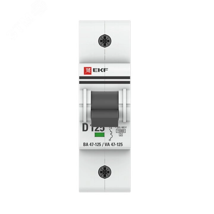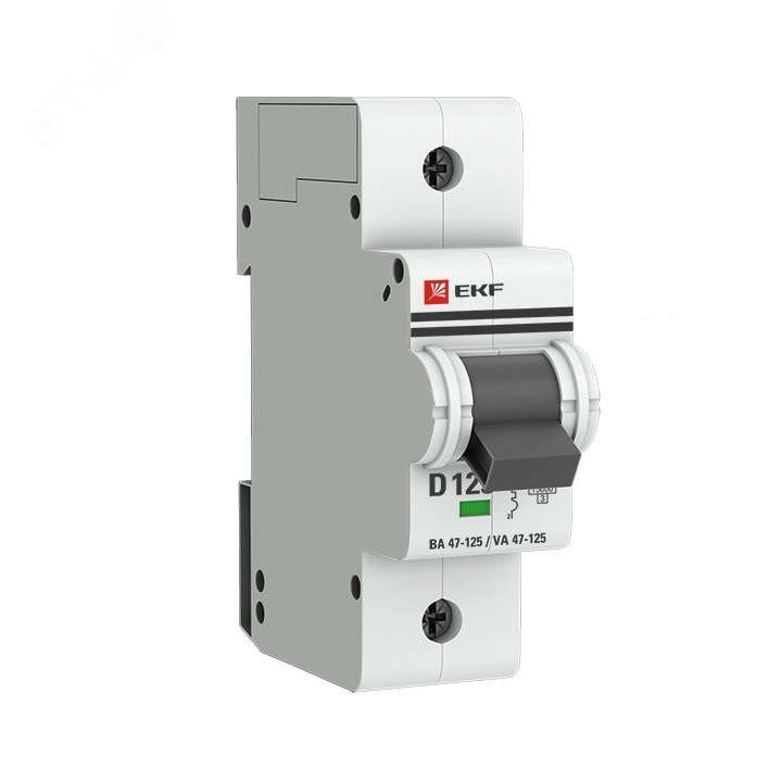 Автоматические выключатели ВА 47-125 предназначены для оперативного управления участками электрических цепей, а так же защиты от токов перегрузки и короткого замыкания в административных, промышленных и жилых зданиях. Благодаря высокой предельной коммутационной способности 15 кА данные выключатели могут использоваться вместо силовых автоматических выключателей. Выключатели имеют ширину корпуса 1,5 модуля (27мм), производятся с номинальными токами до 125 А, в одно-, двух-, трех- и четырех-полюсном исполнениях. Для надежного гашения дуги используется двойной разрыв контактов и две дугогасительные камеры. Оптимальная токопроводимость обеспечивается серебросодержащей контактной группой.
