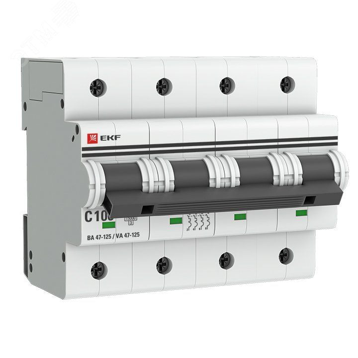 Автоматические выключатели ВА 47-125 предназначены для оперативного управления участками электрических цепей, а так же защиты от токов перегрузки и короткого замыкания в административных, промышленных и жилых зданиях. Благодаря высокой предельной коммутационной способности 15 кА данные выключатели могут использоваться вместо силовых автоматических выключателей. Выключатели имеют ширину корпуса 1,5 модуля (27мм), производятся с номинальными токами до 125 А, в одно-, двух-, трех- и четырех-полюсном исполнениях. Для надежного гашения дуги используется двойной разрыв контактов и две дугогасительные камеры. Оптимальная токопроводимость обеспечивается серебросодержащей контактной группой.
