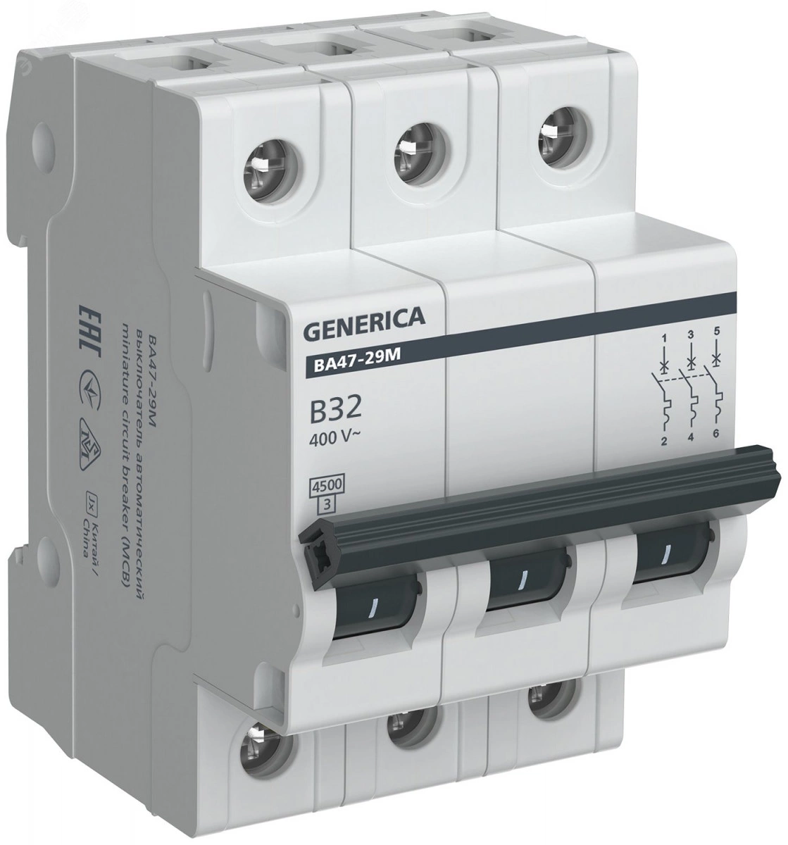 Автоматический выключатель ВА47-29М 3P 32А 4,5кА B GENERICA