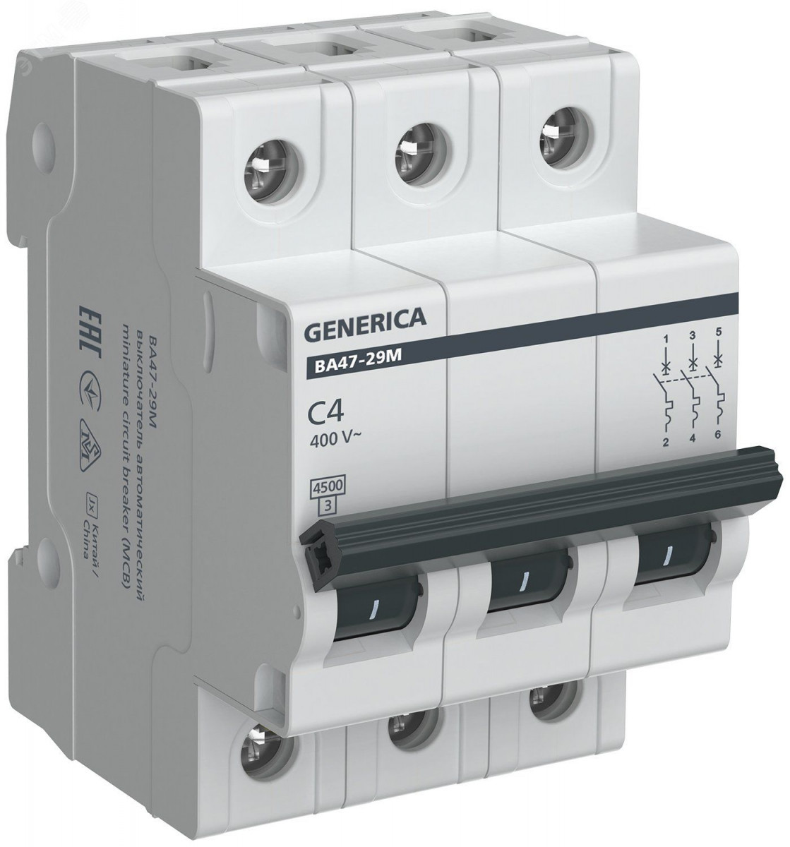 Автоматический выключатель ВА47-29М 3P 4А 4,5кА C GENERICA