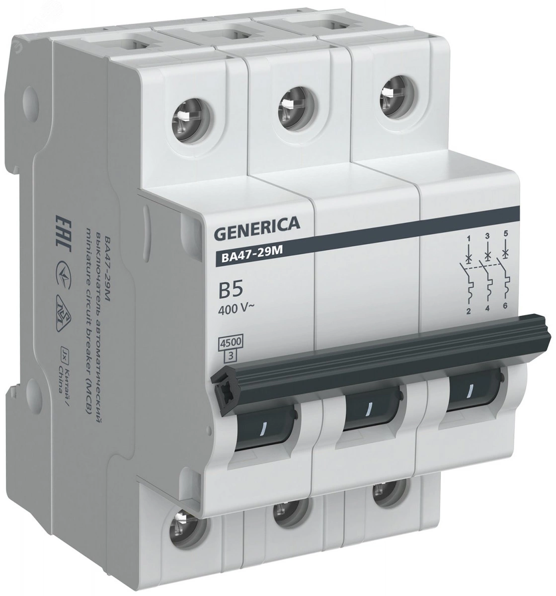 Автоматический выключатель ВА47-29М 3P 5А 4,5кА B GENERICA