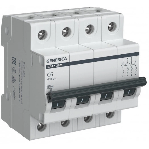 Автоматический выключатель ВА47-29М 4P 6А 4,5кА C GENERICA