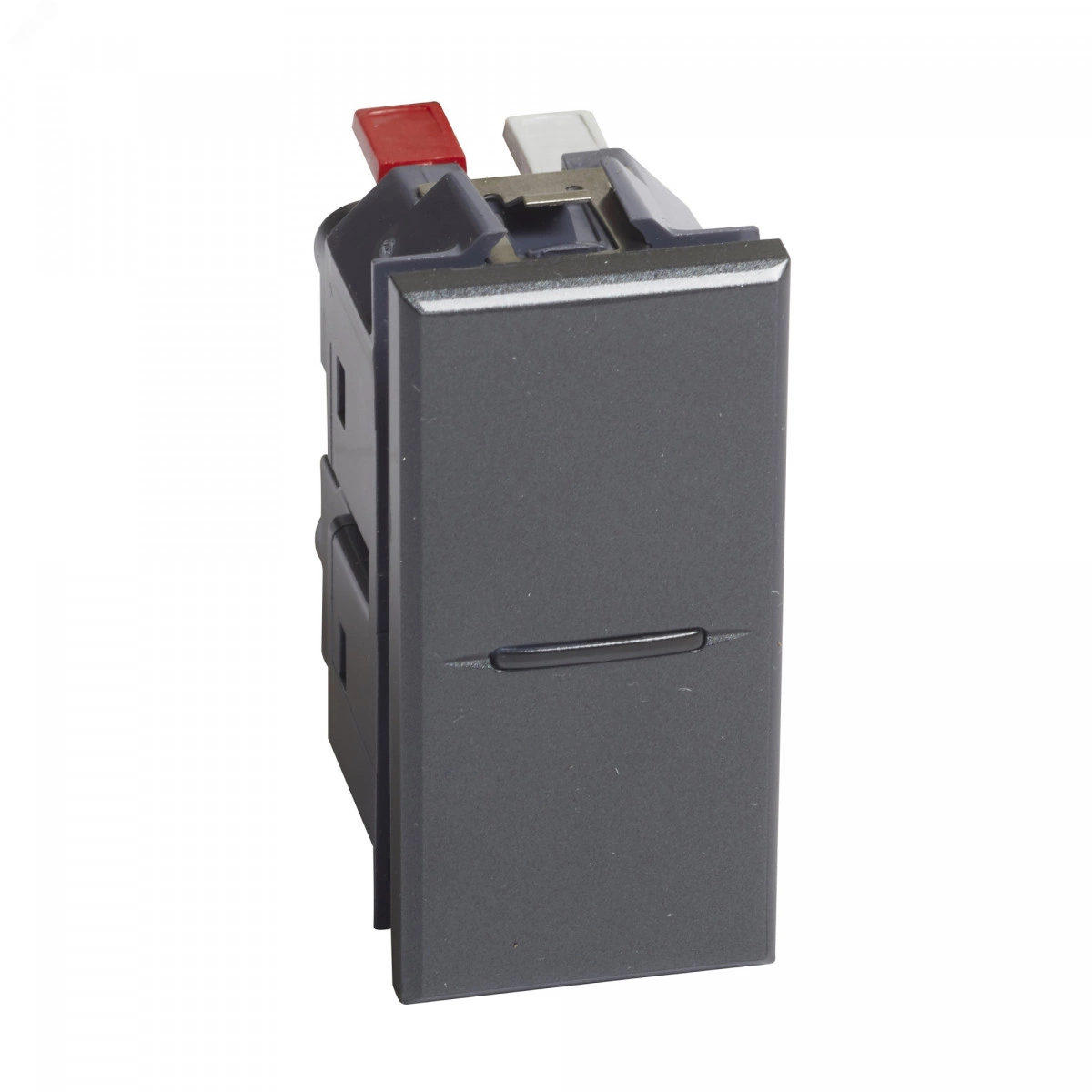 Axolute. Переключатель аксиальный одноклавишный 10А 250В. Автоматические клеммы. 1 модуль. Цвет Антрацит