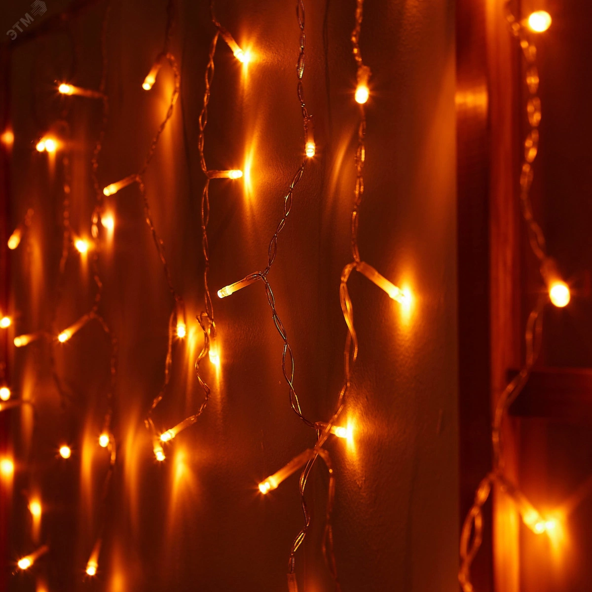 Бахрома светодиодная с эффектом мерцания 12м Соединяемая 195 светодиодов Янтарный свет Провод прозрачный ULD-B12006-195/TTK AMBER IP44 ТМ Uniel