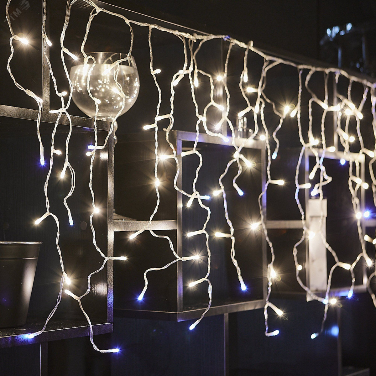 Бахрома светодиодная с эффектом мерцания 25м Соединяемая 440 светодиодов Теплый белый и белый свет Провод прозрачный ULD-B25006-440/TTK WARMWHITE-WHITE IP44 ТМ Uniel