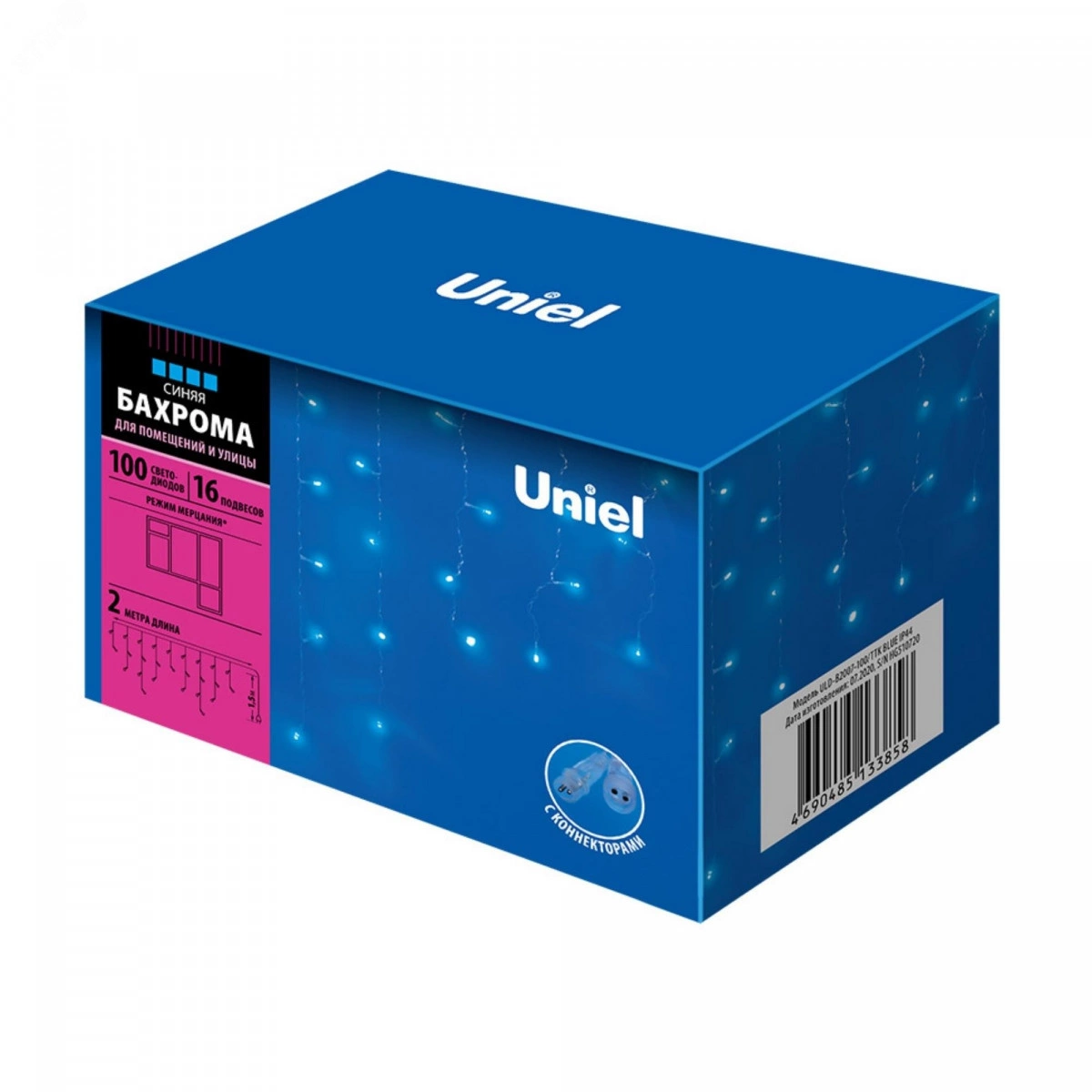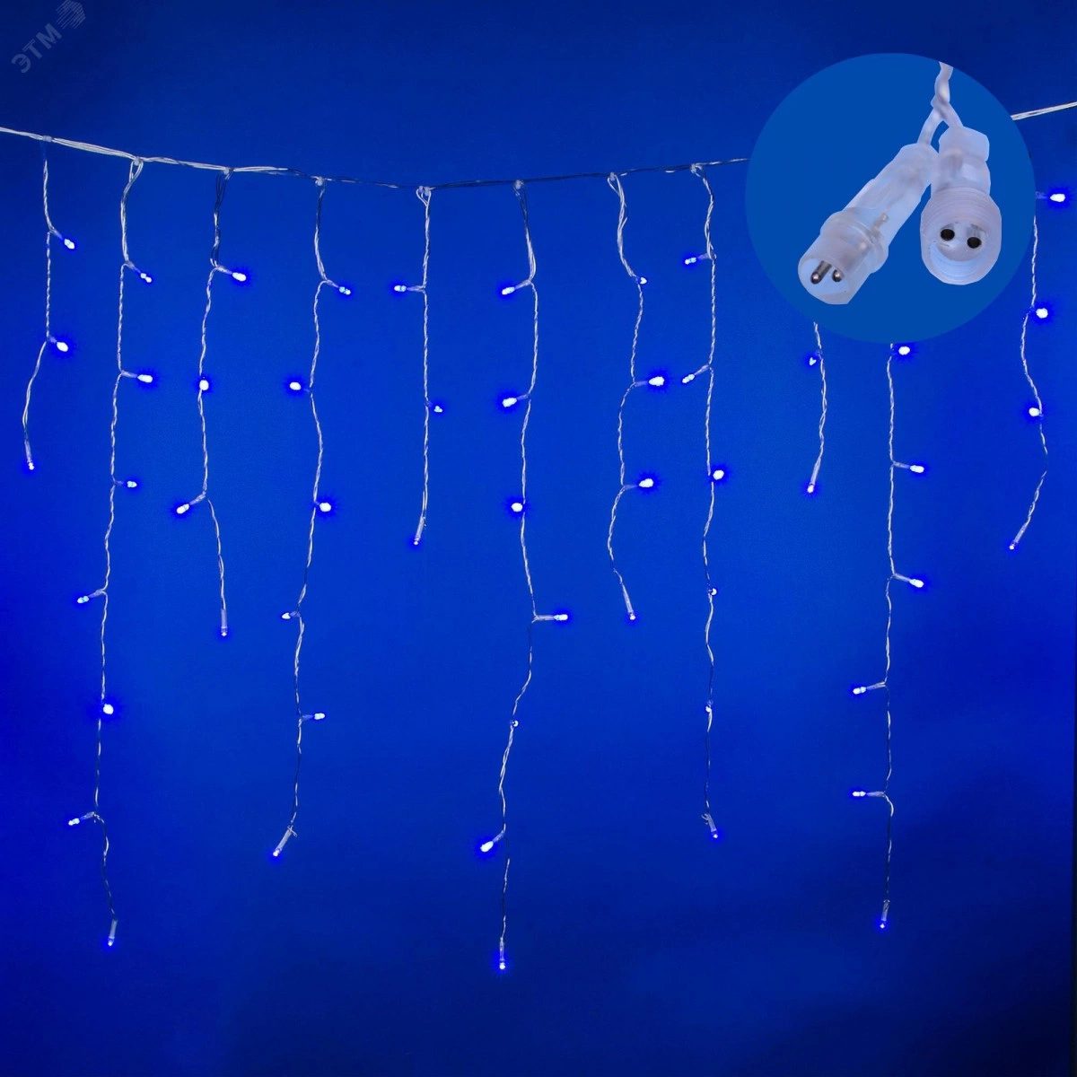 Бахрома светодиодная с эффектом мерцания 2м Соединяемая 100 светодиодов Синий свет Провод прозрачный ULD-B2007-100/TTK BLUE IP44