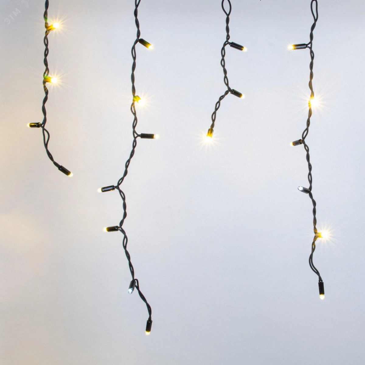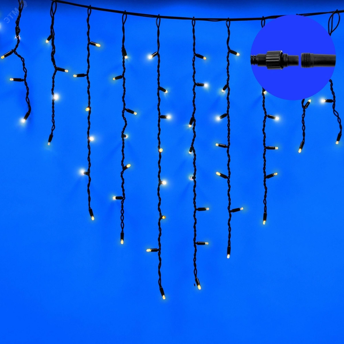 Бахрома светодиодная с эффектом мерцания 3м Соединяемая 200 светодиодов Теплый белый и белый свет Провод черный ULD-B3007-200/TBK WARMWHITE-WHITE IP67 ТМ Uniel