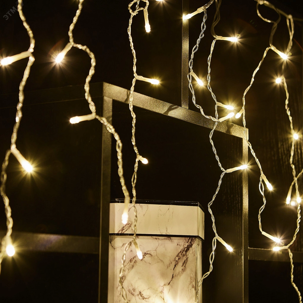 Бахрома светодиодная со статическим свечением 6м Соединяемая 200 светодиодов Теплый белый свет Провод прозрачный ULD-B6007-200/STK WARM WHITE IP44 ТМ Uniel