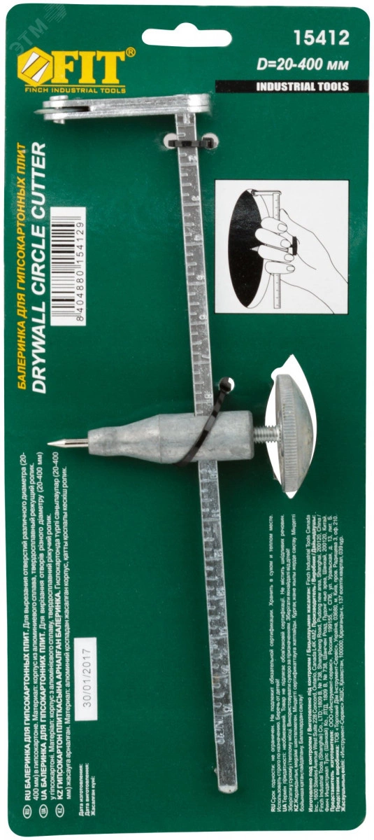 Сверло ''балеринка'' FIT IT предназначена для вырезания в гипсокартоне отверстий разного диаметра. Возможность регулировки диаметра отверстий позволяет использовать инструмент для разных целей. Режущий ролик выполнен из качественной легированной стали, благодаря чему долго держит заточку.