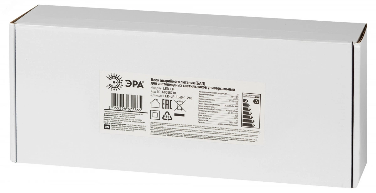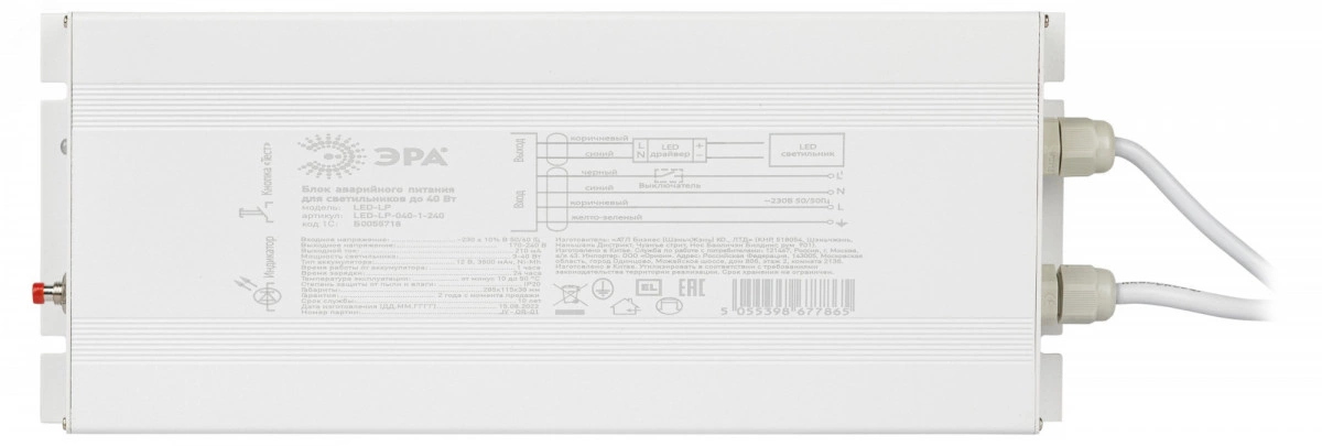 БАП для светильников LED-LP-E040-1-240 универсальный до 40Вт 1час IP20