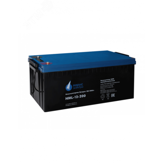Свинцово-кислотная аккумуляторная батарея HML-12-200 по технологии AGM для длительного срока службы с высокой цикличностью. Применяется для систем бесперебойного питания, безопасности и аварийного освещения, оборудования связи и прочего оборудования с большим количеством циклов разряда - заряда батарей. Электролит заключен в сепараторах между пластин и всегда остается неподвижным, что позволяет эксплуатировать АКБ в любом положении. Напряжение - 12 В, ёмкость - 200 Ач.