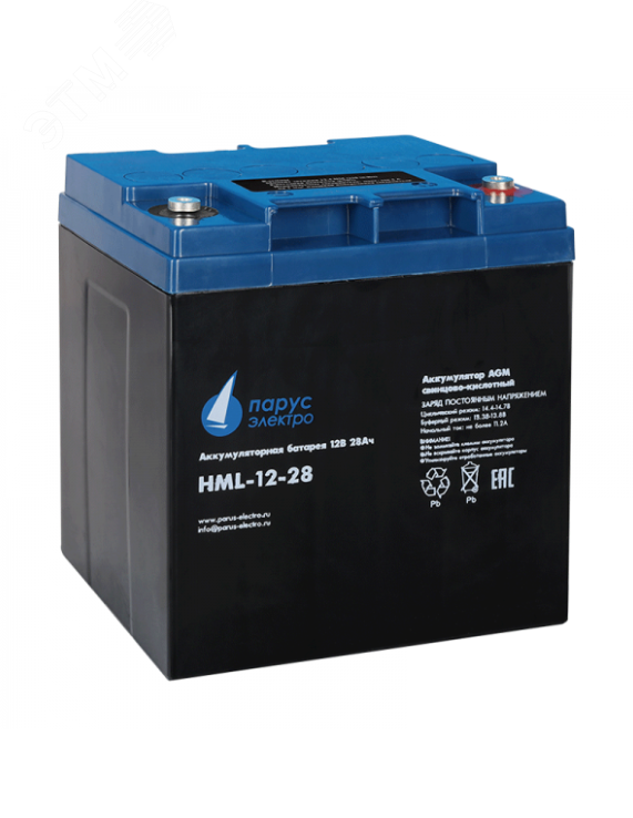 Свинцово-кислотная аккумуляторная батарея HML-12-28 по технологии AGM для длительного срока службы с высокой цикличностью. Применяется для систем бесперебойного питания, безопасности и аварийного освещения, оборудования связи и прочего оборудования с большим количеством циклов разряда - заряда батарей. Электролит заключен в сепараторах между пластин и всегда остается неподвижным, что позволяет эксплуатировать АКБ в любом положении. Напряжение - 12 В, ёмкость - 28 Ач.