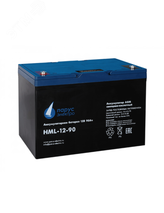 Свинцово-кислотная аккумуляторная батарея HML-12-90 по технологии AGM для длительного срока службы с высокой цикличностью. Применяется для систем бесперебойного питания, безопасности и аварийного освещения, оборудования связи и прочего оборудования с большим количеством циклов разряда - заряда батарей. Электролит заключен в сепараторах между пластин и всегда остается неподвижным, что позволяет эксплуатировать АКБ в любом положении. Напряжение - 12 В, ёмкость - 90 Ач.