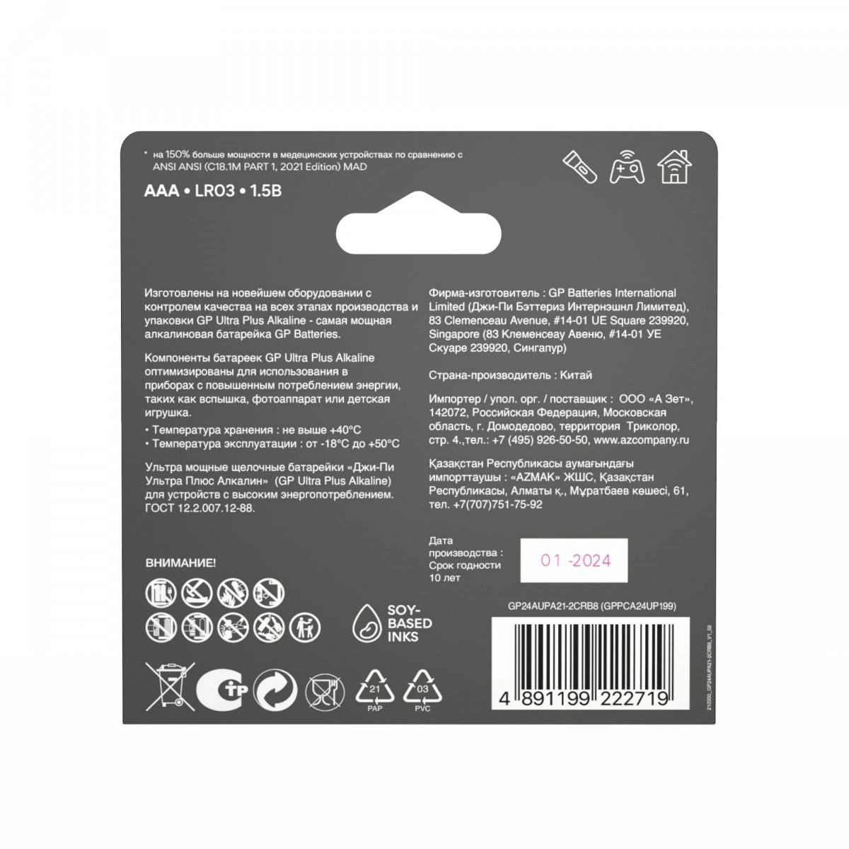 Батарейка алкалиновая c технологией G-tech GP Ultra Plus Alkaline 24А AАA - 8 шт. на блистере