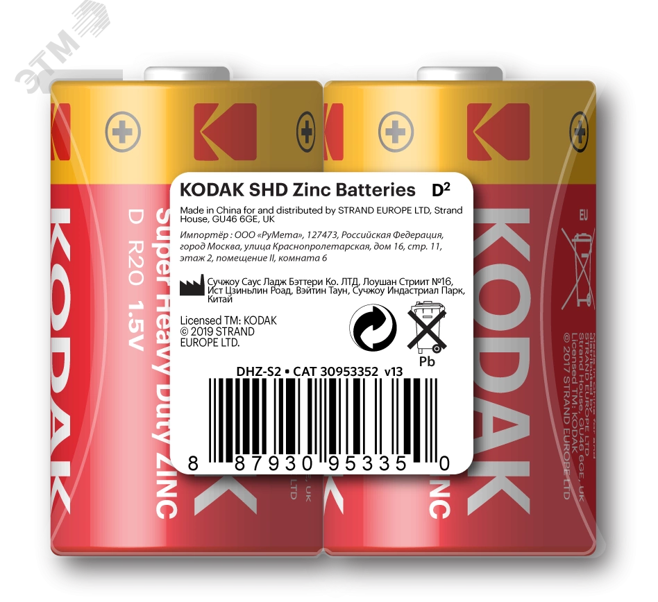 Батарейка Kodak R20-2S SUPER HEAVY DUTY Zinc [KDHZ 2S] (24/144/5616)