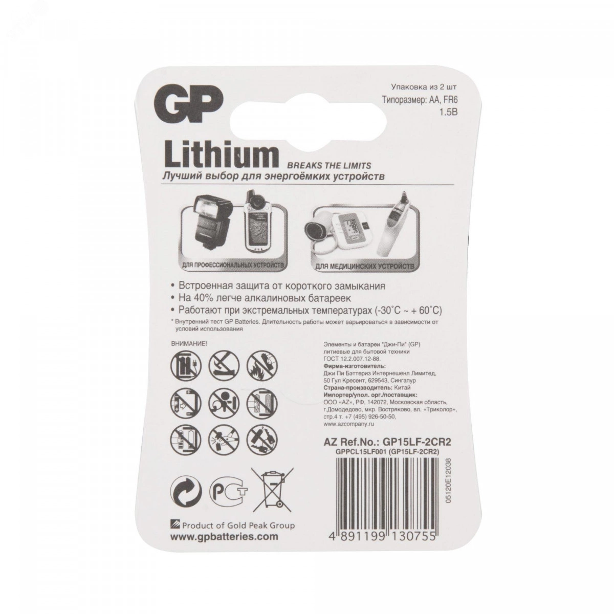 Батарейка литиевая 15LF AA - 2 шт. в блистере
