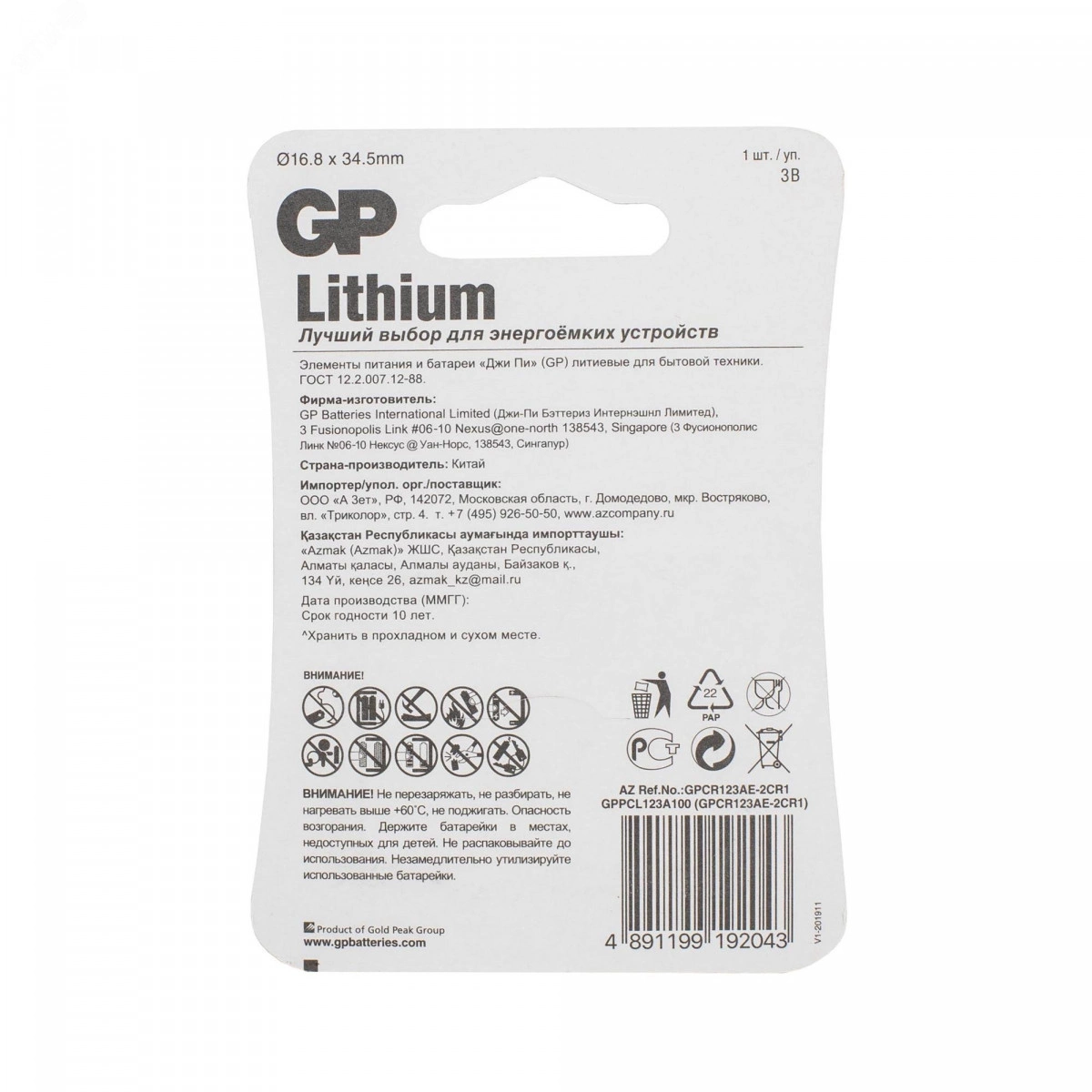 Батарейка литиевая CR123AE 3В- 1 шт. в блистере