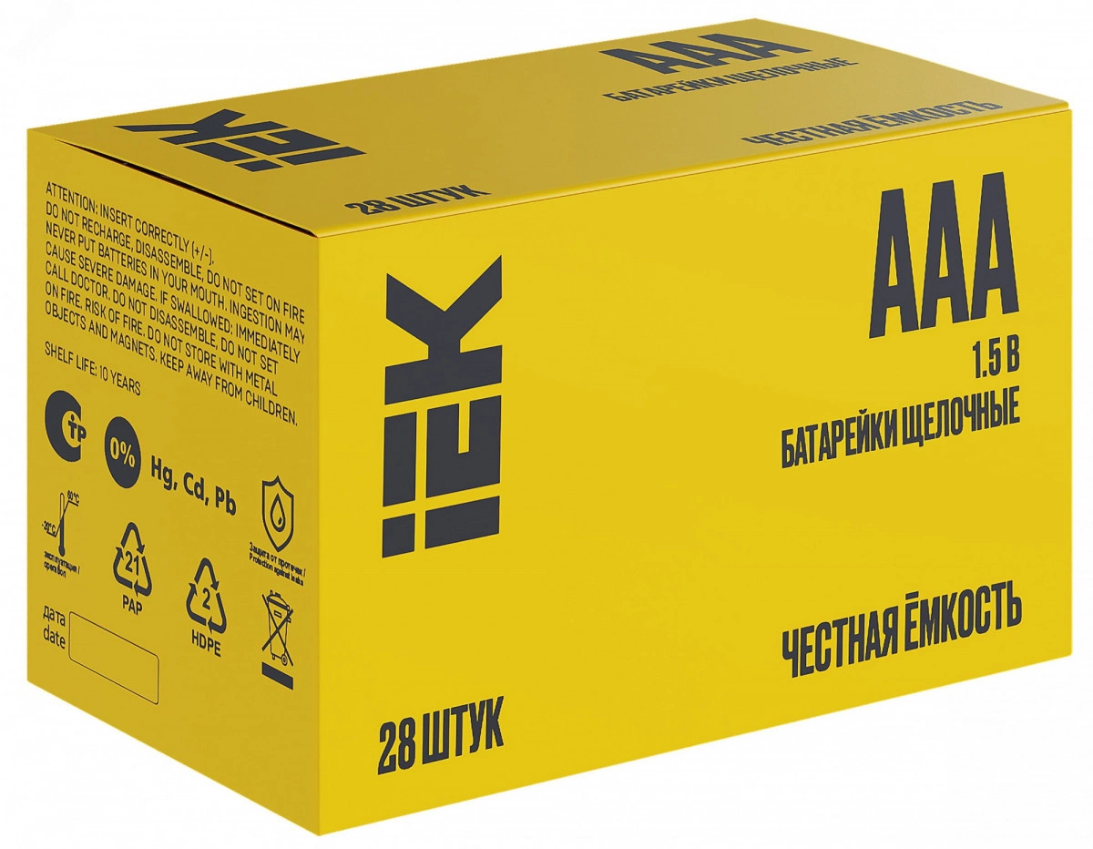 Батарейки щелочные мизинчиковые (LR03) 28 шт. в упаковке бокс. Подходят для использования в приборах с высоким и средним энергопотреблением - часах, игрушках, пультах, игровых консолях, кухонных и напольных весах, фонарях и т.д. Соответствуют ГОСТ 12.2.007.12, ГОСТ 24721, ГОСТ Р МЭК 60086-1 (IEC 60086-1). Честная емкость - технология TDS с максимальным заполнением ёмкости батарейки. Сохраняет заряд до 10 ЛЕТ. Работа в широком диапазоне температур от -20 до +60 С. Без содержания вредных веществ - 0% HG, CD, PB. Защита от механических воздействий благодаря сверхпрочной оболочки из стали. Защита от протечек и вытекания электролита с помощью взрывозащитной уплотнительной пробки.