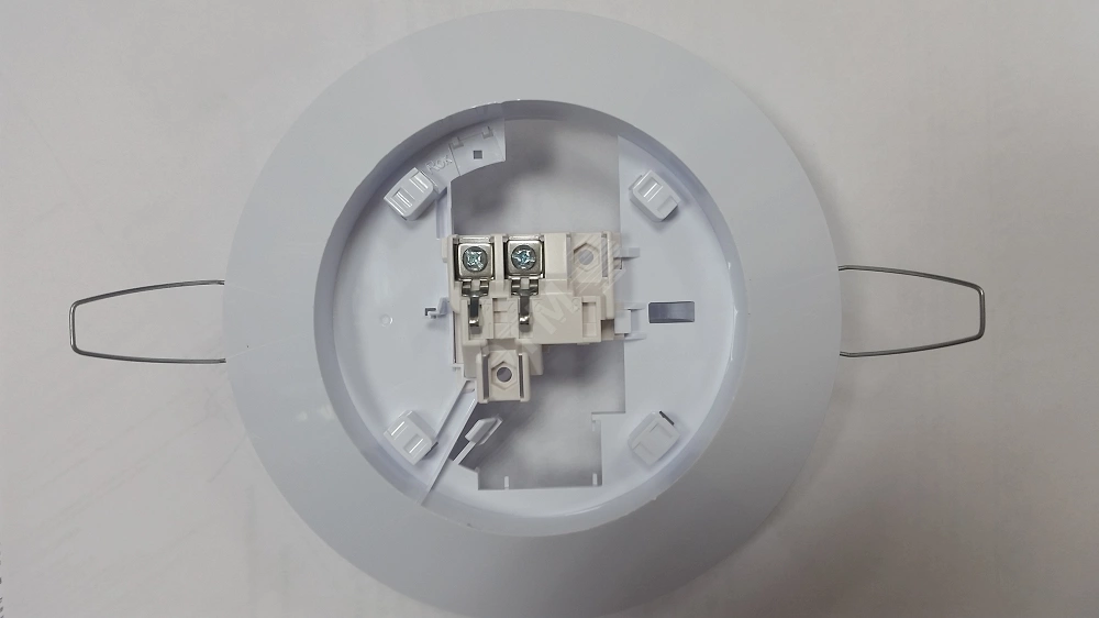 Базовое основание предназначено для соединения адресных извещателей с линией связи, а так же для установки извещателей, работающих в шлейфовых неадресных системах. Различают два основных типа исполнения - для подвесного потолка и для монтажа на поверхность. Модельный ряд довольно широкий и отличается по количеству и способу соединения контактов. Контакты бывают винтовые (W) и нажимные (V).