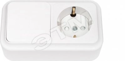 Полное описание: Беларусь Блок наружный: выключатель одноклавишный + розетка с заземлением со шторками В-РЦ-577
