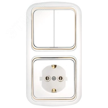 Блок состоит из выключателя двухклавишного и розетки с заземляющим контактом скрытой установки. Возможность горизонтальной и вертикальной установки. Пластик ABS, глянцевая поверхность, устойчив к УФ-излучению, ударо-прочный и стойкий к излому корпус.