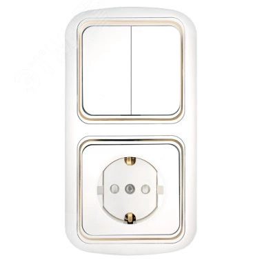 Блок состоит из выключателя двухклавишного и розетка с заземляющим контактом и шторками скрытой установки. Возможность горизонтальной и вертикальной установки. Пластик ABS, глянцевая поверхность, устойчив к УФ-излучению, ударо-прочный и стойкий к излому корпус.