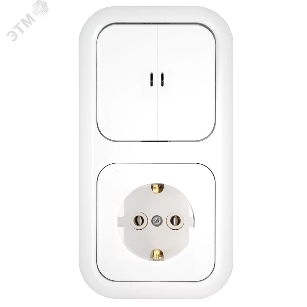 Блок состоит из выключателя двухклавишного со световой индикацией и розетки скрытой установки. Возможность горизонтальной и вертикальной установки. Пластик ABS, глянцевая поверхность, устойчив к УФ-излучению, ударо-прочный и стойкий к излому корпус.