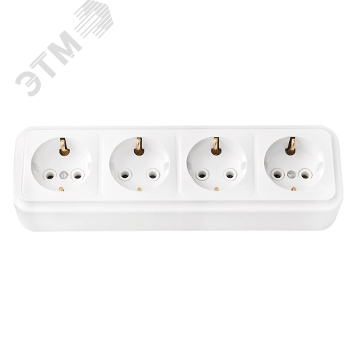 Розетка штепсельная четырехместная с заземляющим контактом открытой установки, предназначена для присоединения электрических приемников с номинальным напряжением 250 В к электрической сети переменного тока в нормальных климатических условиях внешней среды. Надёжная контактная группа. Изделие выдерживает 20 А. Пластик ABS, глянцевая поверхность, устойчив к УФ-излучению, ударо-прочный и стойкий к излому корпус.