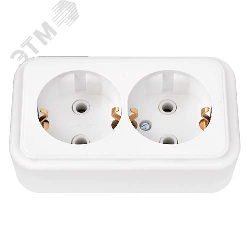 Розетка штепсельная двухполюсная двухместная открытой установки с заземляющим контактом предназначена для присоединения электрических приемников с номинальным напряжением 250 В к электрической сети переменного тока в нормальных климатических условиях внешней среды. Электротехнические свойства механизма полностью соответствуют номинальным токовым показателям отечественных энергетических линий.В качестве материала для производства изделия использовался специальный очень прочный и экологически безопасный полимер. Изделие надежно защищено от разрушительного воздействия ультрафиолетового излучения, не претерпевает видимых изменений при постоянных многочисленных эксплуатационных контактах.