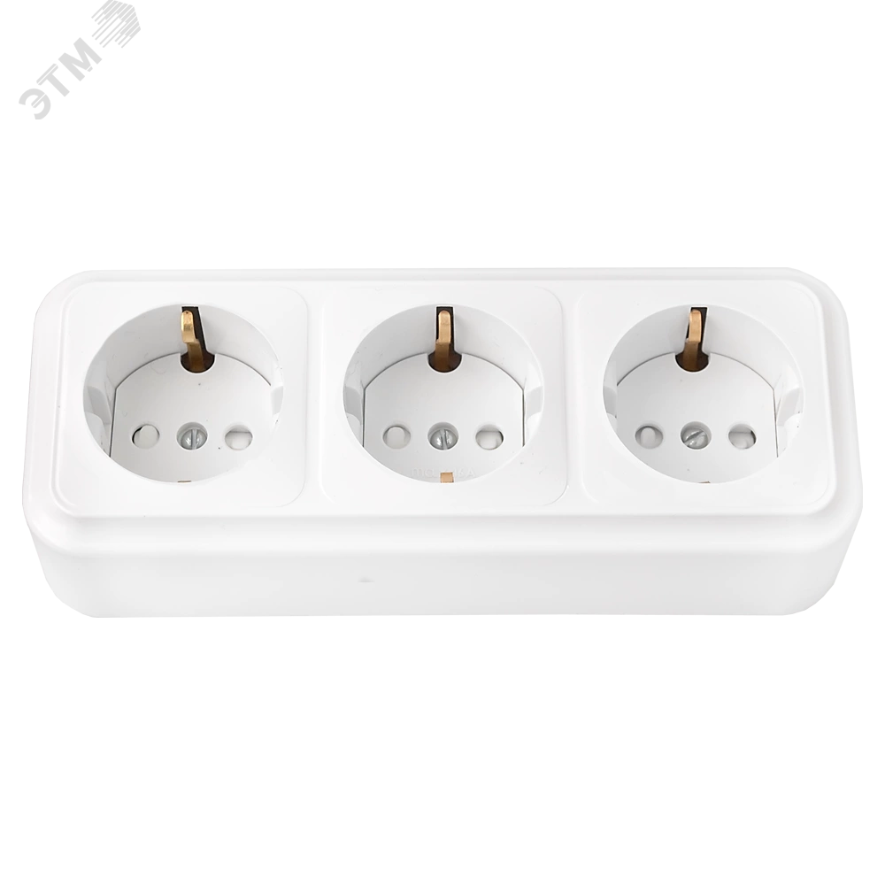 Розетка штепсельная трехместная с заземляющим контактом и шторками открытой установки, предназначена для присоединения электрических приемников с номинальным напряжением 250 В к электрической сети переменного тока в нормальных климатических условиях внешней среды. Надёжная контактная группа. Изделие выдерживает 20 А. Пластик ABS, глянцевая поверхность, устойчив к УФ-излучению, ударо-прочный и стойкий к излому корпус.