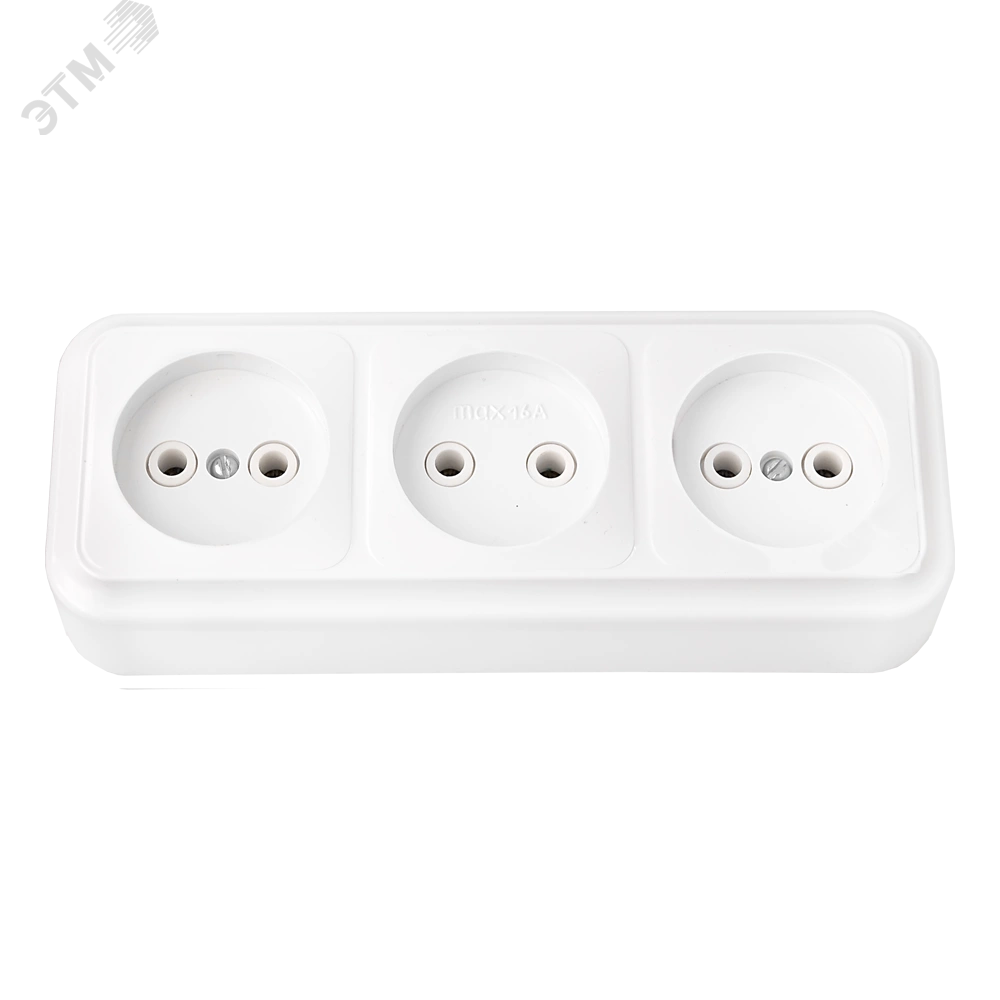 Розетка штепсельная трехместная открытой установки, предназначена для присоединения электрических приемников с номинальным напряжением 250 В к электрической сети переменного тока. В качестве материала для производства изделия использовался специальный очень прочный и экологически безопасный полимер. Изделие надёжно защищено от разрушительного воздействия ультрафиолетового излучения, не претерпевает видимых изменений при постоянных многочисленных эксплуатационных контактах. Надёжная контактная группа. Изделие выдерживает 20 А.