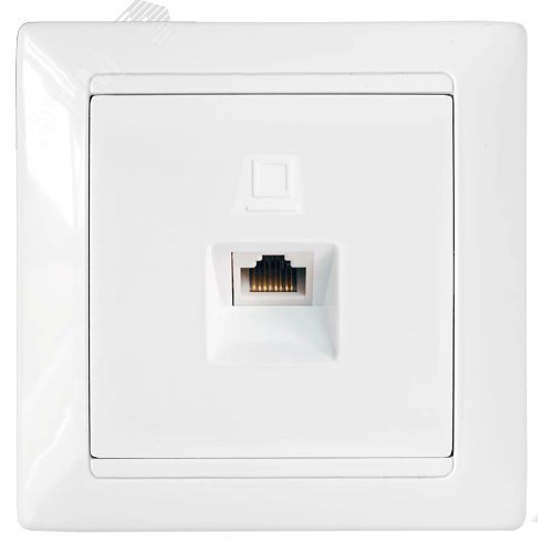 Розетка компьютерная скрытой установки. Обеспечит надежную передачу данных при скорости до 100 Мбит/с. Изделие надёжно защищено от разрушительного воздействия ультрафиолетового излучения, не претерпевает видимых изменений при постоянных многочисленных эксплуатационных контактах. Надёжная контактная группа.
