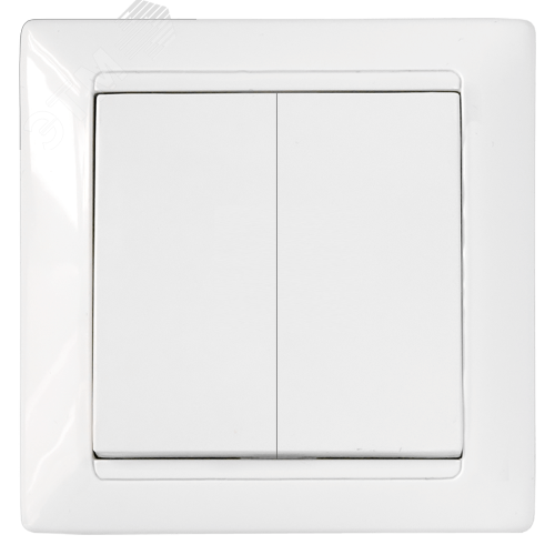 Выключатель двухклавишный скрытой установки. Выключатель имеет посеребренные контакты. Предназначен для коммутации электрической цепи переменного тока с номинальным напряжением 250 В. Климатическое исполнение УХЛ4. Пластик ABS, глянцевая поверхность, устойчив к УФ-излучению, ударопрочный и стойкий к излому корпус.