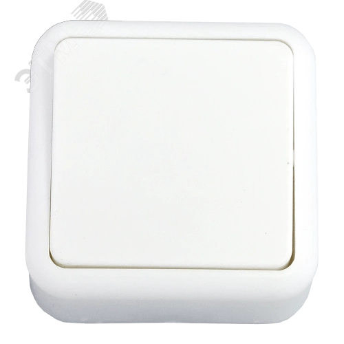 Выключатель одноклавишный открытой установки. В качестве материала для производства изделия использовался пластик ABS. Выключатель имеет посеребренные контакты. У выключателя глянцевая поверхность. Он устойчив к УФ-излучению и имеет ударо-прочный и стойкий к излому корпус.