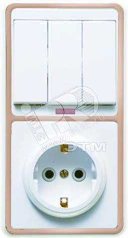 Полное описание: БЭЛЛА Блок БКВР-054 Выключатель трехклавишный с подсветкой + розетка с заземлением золото