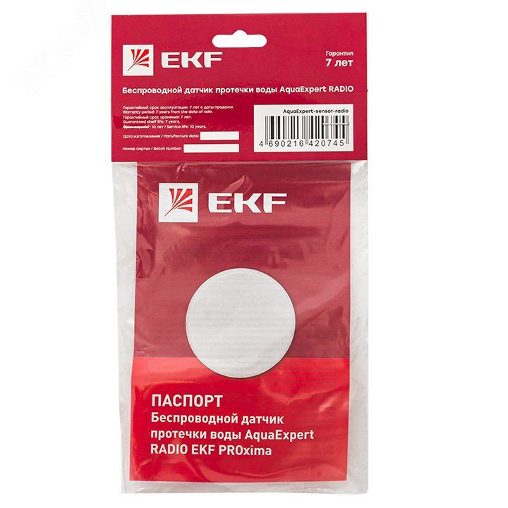 Беспроводной датчик протечки воды EKF AquaExpert RADIO AquaExpert-sensor-radio предназначен для обнаружения протечек воды в системах водоснабжения, отопления, канализации и кондиционирования.