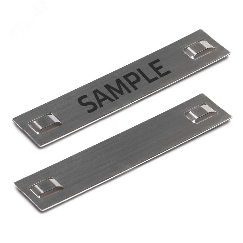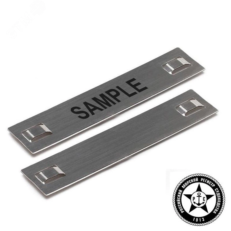 Для маркировки проводов, кабелей и т. п. Материал - нержавеющая сталь AISI 304. Покрытие - отсутствует. Температура эксплуатации - от -80 градусов по Цельсию до +538 градусов по Цельсию. Выпуклая конструкция мест креплений обеспечивает быстрый монтаж бирки на кабеле. Использование со стяжками из нержавеющей стали гарантирует надежную долгосрочную идентификацию. Нанесение обозначений и логотипов любого формата по макету заказчика на специальном лазерном оборудовании