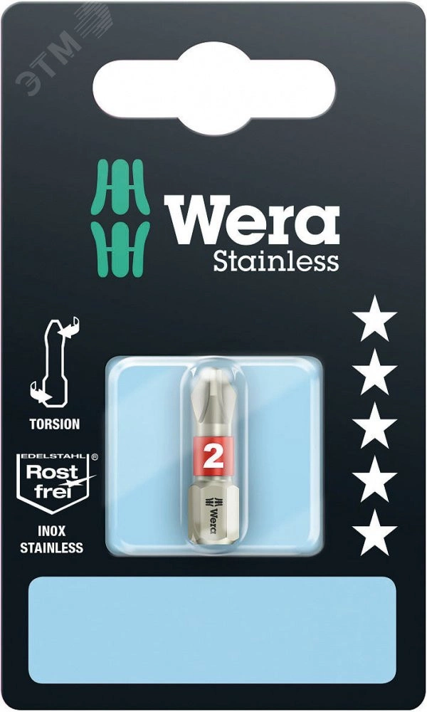 Высококачественные крестовые биты из специальной стали. Инструменты Wera Edelstahl изготавливаются из специальной стали, что исключает неприятное распространение контактной ржавчины. С торсионной зоной - торсионные биты гасят пики нагрузки. Предотвращается преждевременный износ, возрастает срок службы битов. Шестигранный хвостовик 1/4'', подходит для держателя по стандарту DIN ISO 1173-D 6,3.