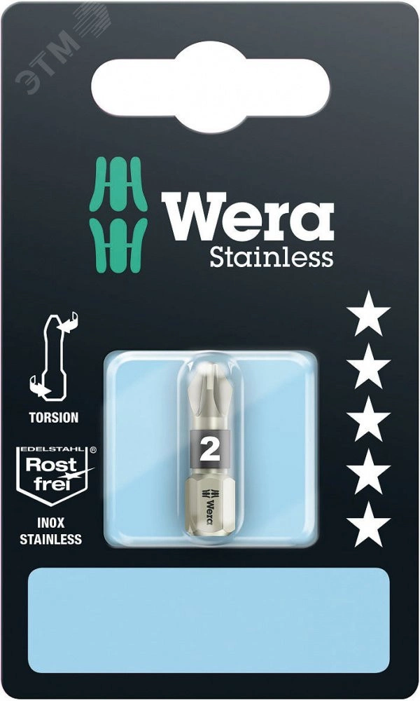 Высококачественные биты Pozidriv* из специальной стали. Инструменты Wera Edelstahl изготавливаются из специальной стали, что исключает неприятное распространение контактной ржавчины. С торсионной зоной - торсионные биты гасят пики нагрузки. Предотвращается преждевременный износ, возрастает срок службы битов. Шестигранный хвостовик 1/4'', подходит для держателя по стандарту DIN ISO 1173-D 6,3. * Pozidriv - зарегистрированный торговый знак фирмы European Industrial Service Ltd.