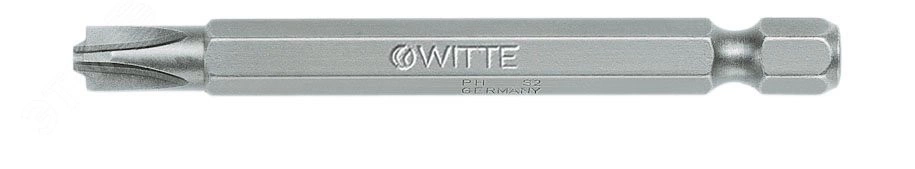 Бита электрика WITTE Industrial крест-шлиц PH/S - для профессионального использования в области электротехники и электроники. Бита имеет комбинированный профиль крест-шлиц PH/S (встречаются различные маркировки - PH/SL, PH/FL, ''plus/minus'' и др.), который представляет из себя совмещенные крестовой (PH) и плоский (SL) профили. Чаще всего встречается в электроустановочных изделиях, например, в автоматах, клеммных колодках, розетках и выключателях. Комплексный метод закаливания гарантирует неизменную твердость 59-61 HRC и таким образом отвечают самым высоким требованиям как в промышленности, так и в профессиональном применении. Промышленные насадки (биты) WITTE изготавливаются принципиально только из высококачественного исходного материала и достигают высоких показателей крутящего момента, далеко за пределами норм DIN, сохраняя при этом повышенный срок службы.