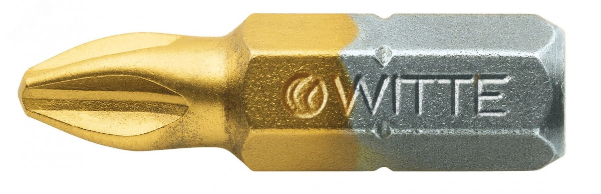 Бита WITTE TIN крестовая PH (Phillips) - максимальная износостойкость за счет нитрид-титанового покрытия.Покрытие TiN имеет твердость порядка 2800 HV - биты специально разработаны для непрерывного завинчивания, например, на промышленных конвейерах. Значительный эффект экономии достигается за счет увеличенного срока службы и существенно меньшей частоты работ по замене оснастки.