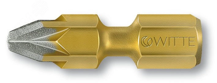 Бита с алмазным напылением WITTE BITFLEX Diamond крестовая PZ (Pozidriv) - экстремальное сцепление с крепежом, благодаря микрочастичному алмазному покрытию. Главное преимущество алмазного покрытия состоит в том, что бита WITTE Diamond ''вгрызается'' в крепеж, практически исключая риск выскальзывания. Это особенно важно при монтаже дорогостоящих материалов и оборудования, поверхность которых легко повредить. Высококачественное золотое покрытие обеспечивает оптимальную защиту от коррозии. При закручивании крепежа в металлические конструкции или твердую древесину, в момент, когда крепеж полностью вкручен, резко возникают пиковые крутящие моменты, результатом действия которых, зачастую является разрушение биты. Биты с маркировкой BITFLEX имеют зону демпфирования между приводом и наконечником, которая способна поглотить пиковые нагрузки и предотвратить разрушение наконечника биты.