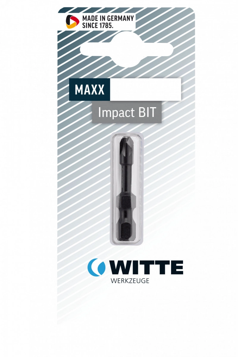 Бита торсионная WITTE Impact крестовая PZ (Pozidriv) - высокопроизводительная бита для применения непосредственно в ударных винтовертах (IMPACT). Профессиональные аккумуляторные ударные винтоверты становятся все более мощными, что повышает требования к оснастке. Благодаря своей индивидуальной торсионной конструкции и специальной термической обработке биты WITTE Impact обеспечивают значительно более длительный срок службы по сравнению с обычными битами. Эластичный материал поглощает пиковые крутящие моменты и эффективно защищает биту.