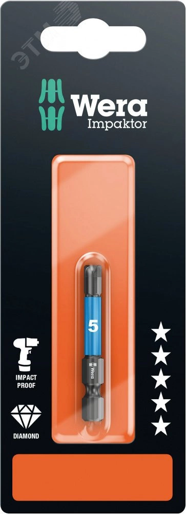 Бита ударная 840/4 IMP DC Impaktor Hex-Plus SB под внутренний шестигранник алмазное покрытие хвостовик шестигранный 1/4 E 6.3 5 x 50 мм с держателем-еврослот для подвеса