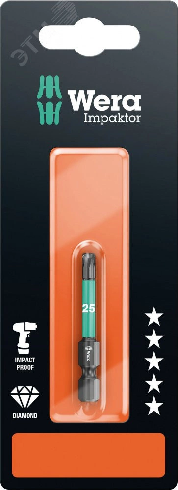 Высококачественные биты TORX. Технология Impaktor обеспечивает срок службы инструментов, заметно превышающий средние показатели даже с учетом жестких условий их применения. Повышенное сопротивление трением за счёт шероховатого покрытия из алмазных частиц предотвращает выскальзывание наконечника из винта. Особенно подходят для работы с предлагаемыми на рынке ударными винтовертами. Шестигранный хвостовик 1/4'', подходит для держателя по стандарту DIN ISO 1173-F 6,3.