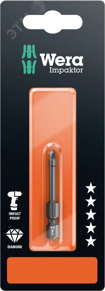 Высококачественные биты под внутренний квадрат. Технология Impaktor обеспечивает срок службы инструментов, заметно превышающий средние показатели даже с учетом жестких условий их применения. Повышенное сопротивление трением за счёт шероховатого покрытия из алмазных частиц предотвращает выскальзывание наконечника из винта. Особенно подходят для работы с предлагаемыми на рынке ударными винтовертами. Шестигранный хвостовик 1/4'', подходит для держателя по стандарту DIN ISO 1173-F 6,3.