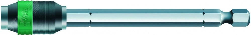 Универсальный держатель Rapidaptor для битов с шестигранным хвостовиком 1/4'' по стандарту DIN ISO 1173-C 6,3 и E 6,3 (ISO 1173). Rapidaptor позволяет ставить биты даже без использования гильзы. Извлечение битов осуществляется простым сдвиганием гильзы вперед - моментальная смена битов даже одной рукой. Сильный постоянный магнит держит биты мертвой хваткой. Наружный шестигранник 1/4'' стержень подходит для использования в шуруповертах с патроном по стандарту DIN ISO 1173-F 6,3.